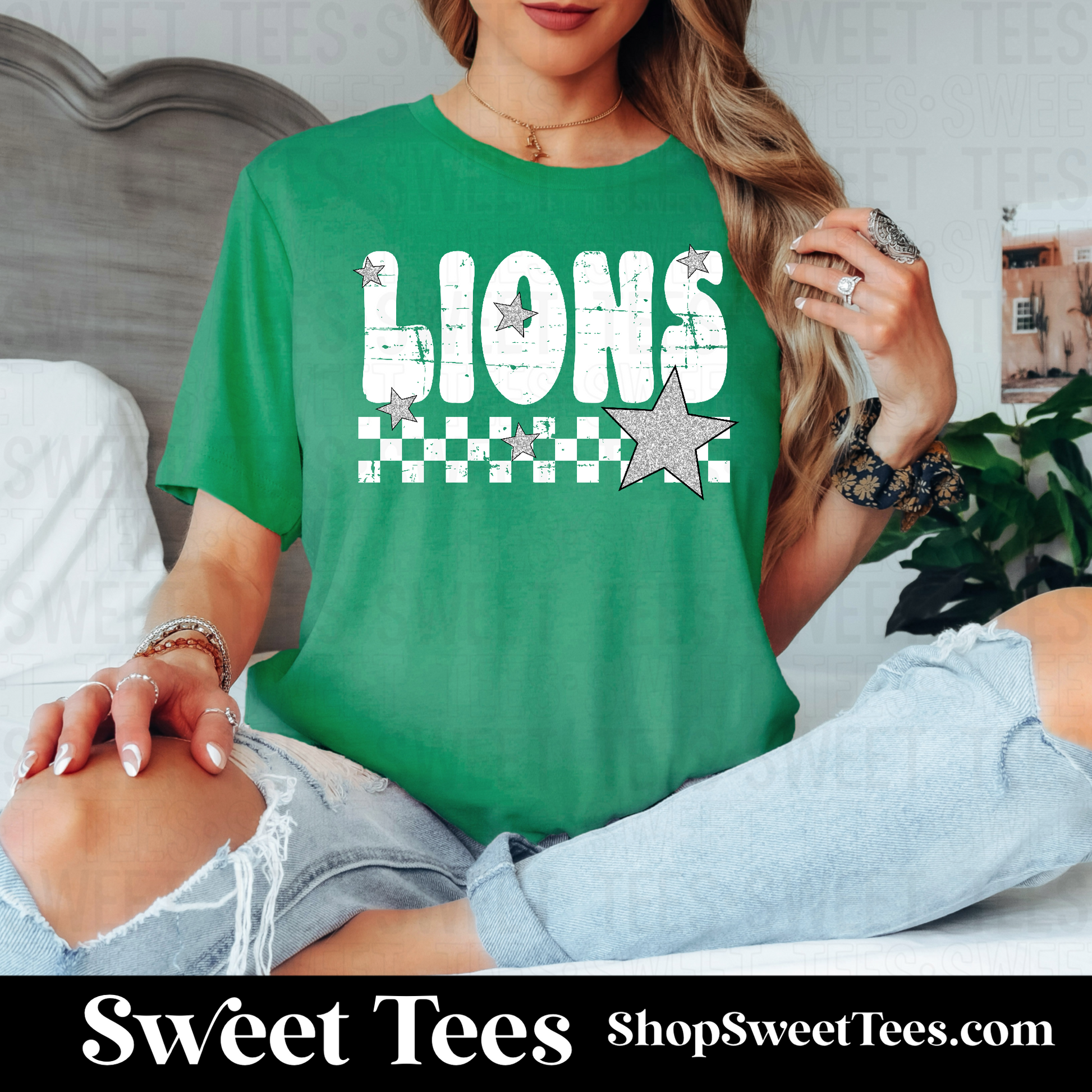 Lions Grunge Checker Star 059 tee - Kelly Green